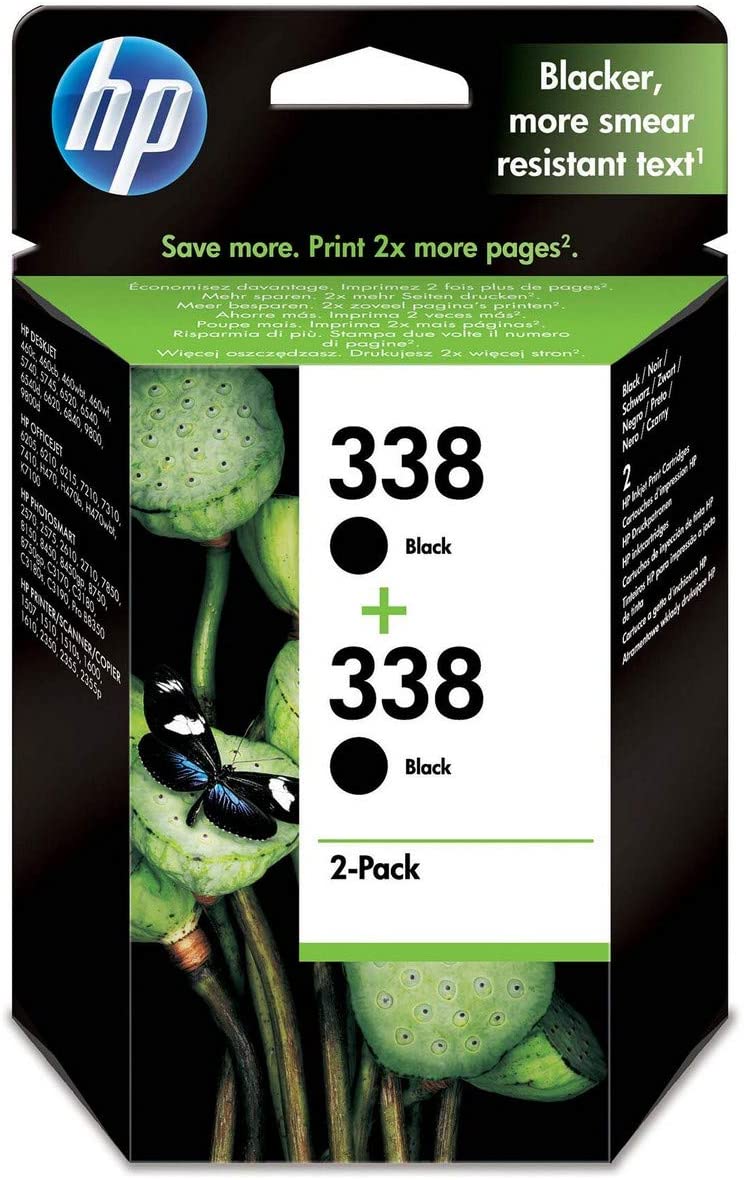 2 x HP 338 Black Inkjet Print Cartridges with Vivera Ink prints darker, laser-quality black text that offers greater resistance to highlighter pen smear. This black ink delivers enhanced durability and superior fade-resistant.